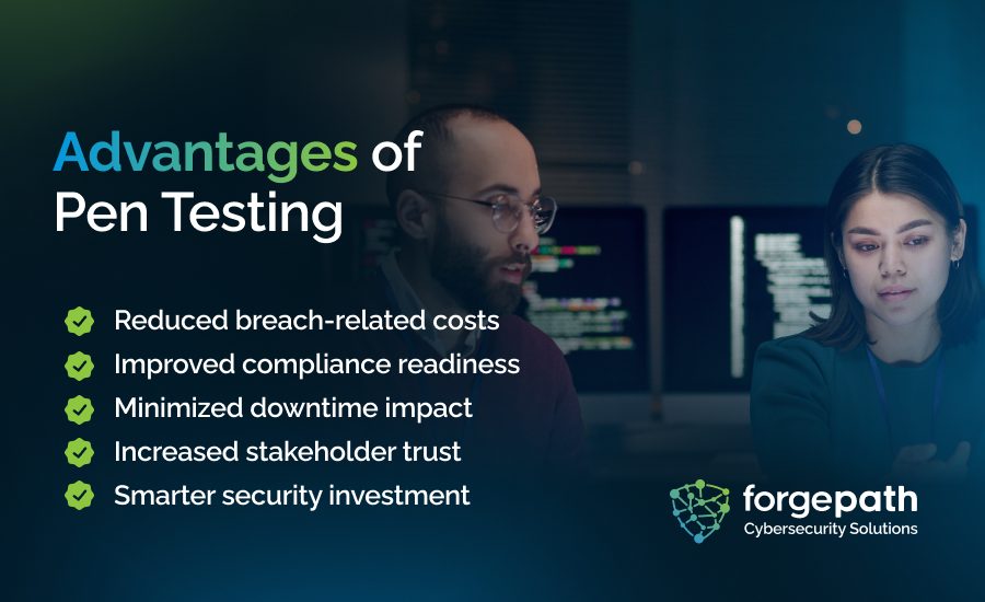 - Pen testing strengthens compliance, minimizes downtime, and boosts stakeholder trust